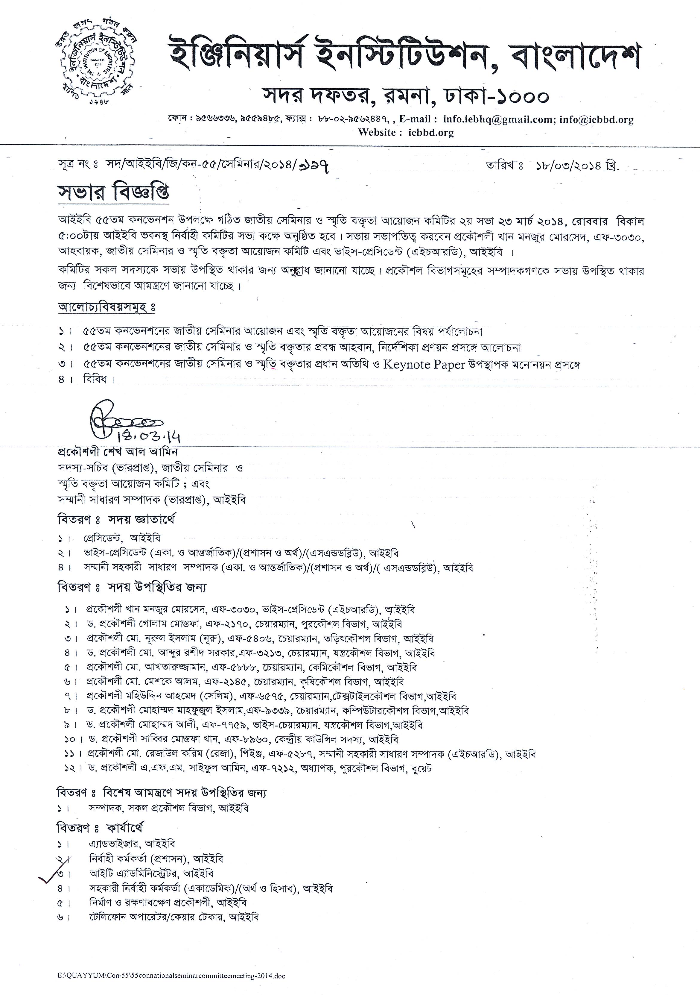 Meeting # 02: National Seminar & Memorial Lecture Organizing Committee on 18 March 2014