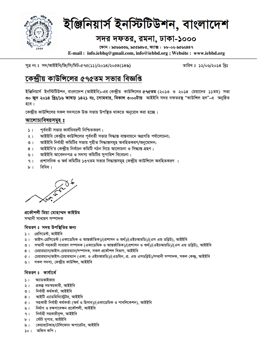 Contact Information of Office Bearers of All Centres & Council Members of IEB 2015-2017